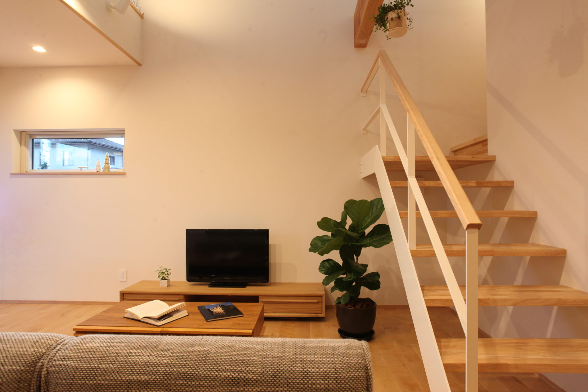リビング・ダイニングです。会長が作ってくれたダイニングテーブルを設置しました。天板は床材と同じカバ桜の無垢材で、テーブル脚の部分は白い塗装にしてもらいました。 こちらをクリックしてください ↓↓↓ 【会長が作製してくれたダイニングテーブル】 https://www.tanaka-kenchiku.com/blog/%e4%bc%9a%e9%95%b7%e3%81%8c%e4%bd%9c%e8%a3%bd%e3%81%97%e3%81%a6%e3%81%8f%e3%82%8c%e3%81%9f%e3%83%80%e3%82%a4%e3%83%8b%e3%83%b3%e3%82%b0%e3%83%86%e3%83%bc%e3%83%96%e3%83%ab/ https://www.tanaka-kenchiku.com/blog/%e4%bc%9a%e9%95%b7%e3%81%8c%e4%bd%9c%e8%a3%bd%e3%81%97%e3%81%a6%e3%81%8f%e3%82%8c%e3%81%9f%e3%83%80%e3%82%a4%e3%83%8b%e3%83%b3%e3%82%b0%e3%83%86%e3%83%bc%e3%83%96%e3%83%ab/ こちらをクリックしてください ↓↓↓ 【K様邸お引渡しとヘリンボーンの机】 https://www.tanaka-kenchiku.com/blog/k%e6%a7%98%e9%82%b8%e3%81%8a%e5%bc%95%e6%b8%a1%e3%81%97%e3%81%a8%e3%83%98%e3%83%aa%e3%83%b3%e3%83%9c%e3%83%bc%e3%83%b3%e3%81%ae%e6%9c%ba/ https://www.tanaka-kenchiku.com/blog/k%e6%a7%98%e9%82%b8%e3%81%8a%e5%bc%95%e6%b8%a1%e3%81%97%e3%81%a8%e3%83%98%e3%83%aa%e3%83%b3%e3%83%9c%e3%83%bc%e3%83%b3%e3%81%ae%e6%9c%ba/ リビングには吹き抜け部分もあり解放感があります。