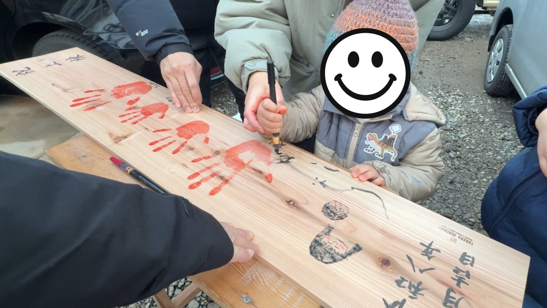 こうして、M様ご家族らしい手形の板が完成。