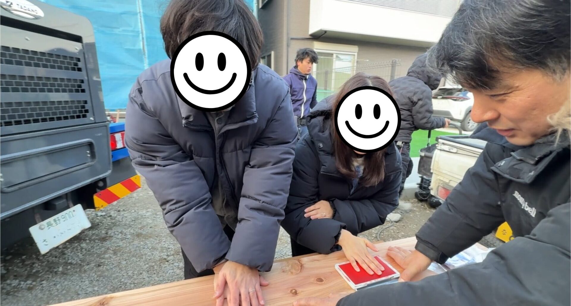 夕方には、N様ご夫婦にもお越しいただき、記念の手形を。並んで押されたお二人の手形のそばには、
