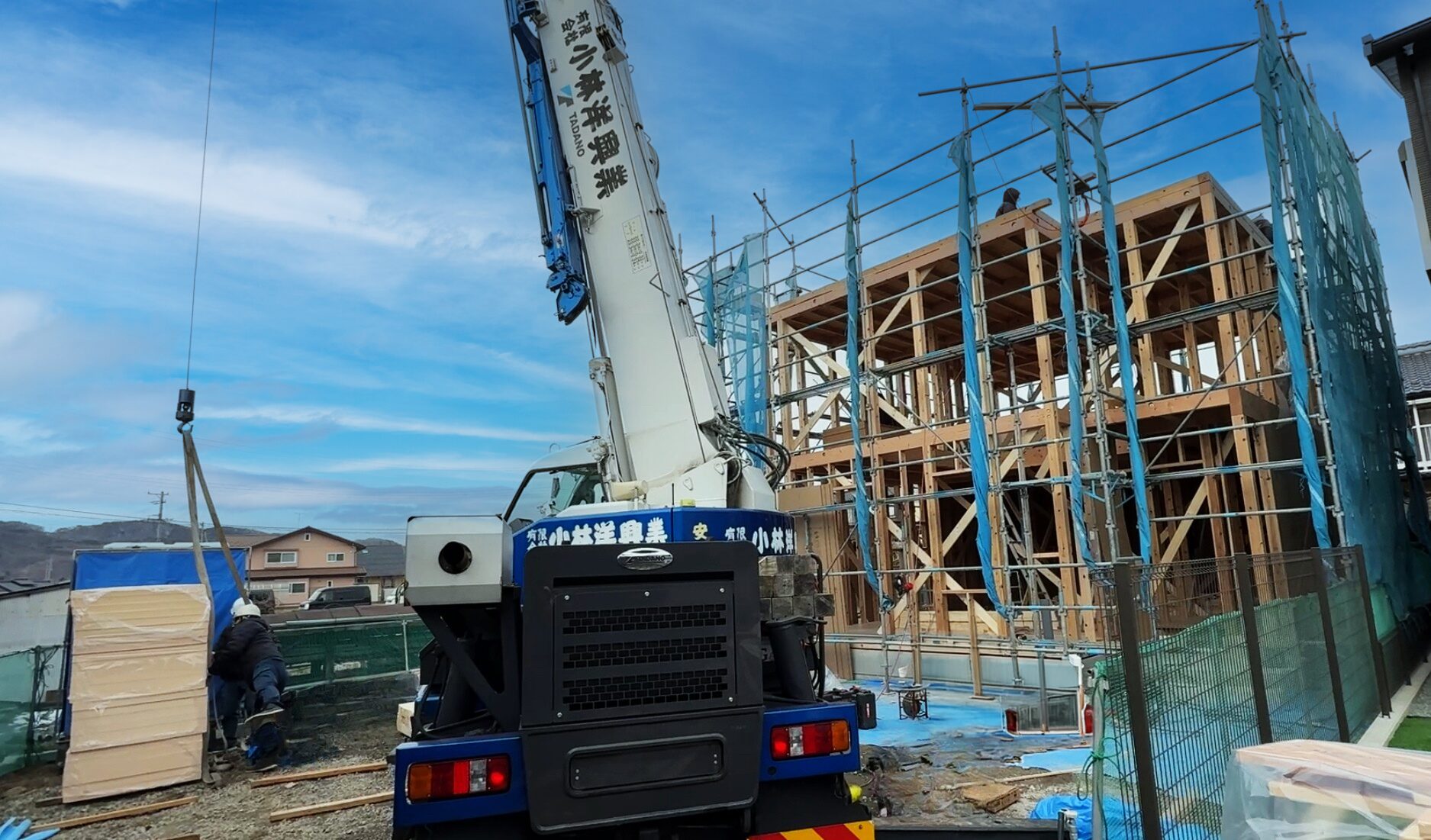 一本一本の柱や梁が組み上がり、何もなかった場所に、少しずつ「住まいのかたち」が現れていきました。