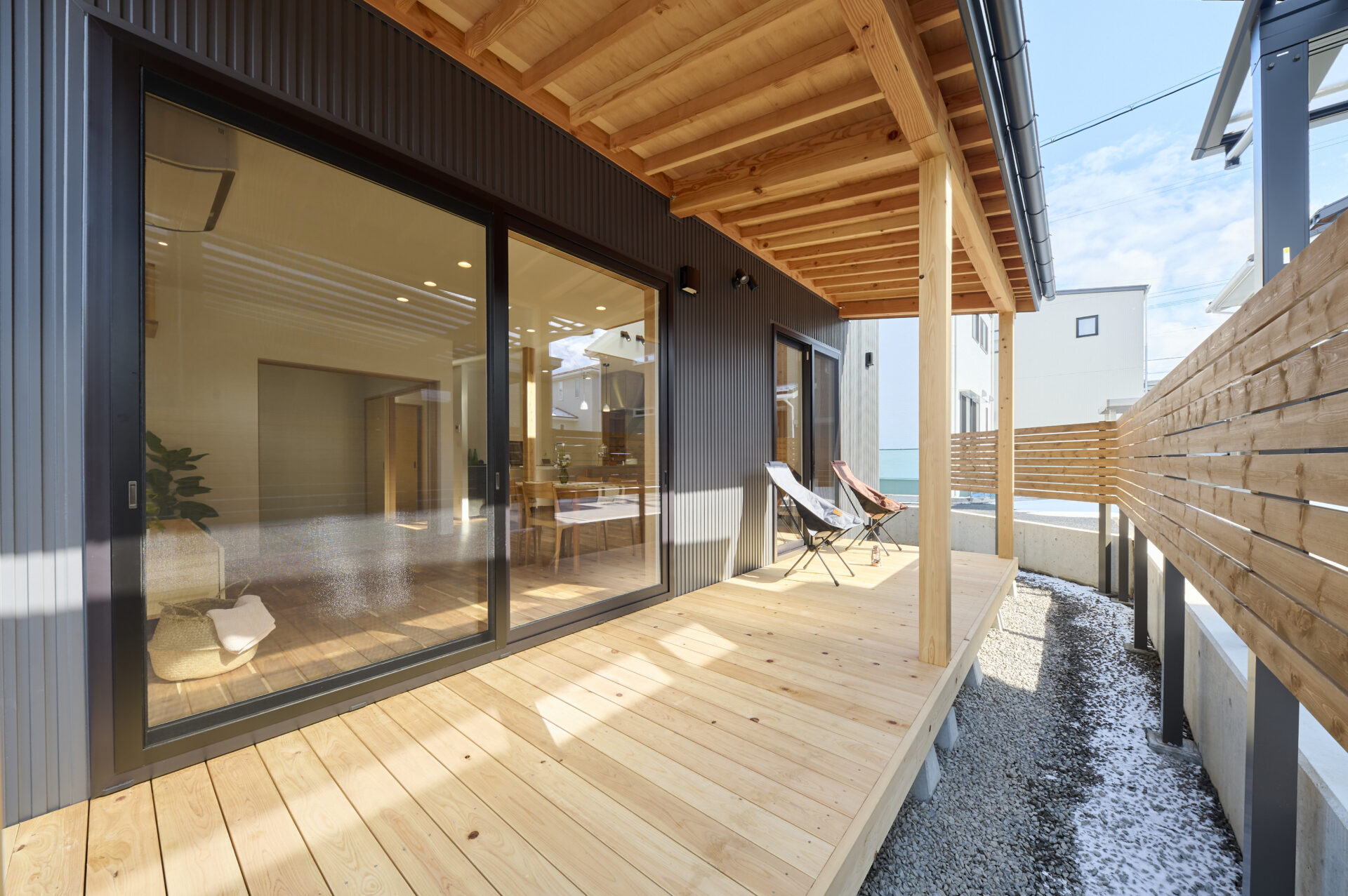 自然素材のヒノキで作るウッドデッキ。ヒノキには抗菌・防虫・消臭・リラックス効果があります。ヒノキが建築材として使われている大きな理由が、その強度特性です。ヒノキは伐採後に200年間強度を増していき、伐採時の120%ほどまで強度は上がります。