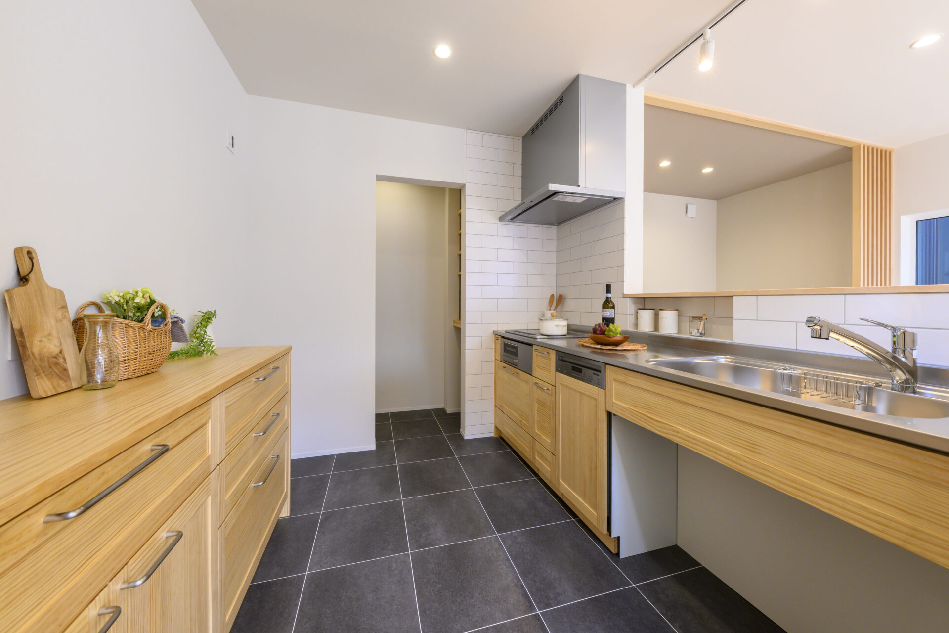 キッチンは、木のぬくもりが魅力の『ウッドワン』を採用。さらに、憧れの『ミーレの食洗器』を組み合わせました。大容量かつ静かな洗浄力で、毎日の家事を快適にサポート。デザイン性と機能性を両立させた、こだわりのキッチンスペースです。
